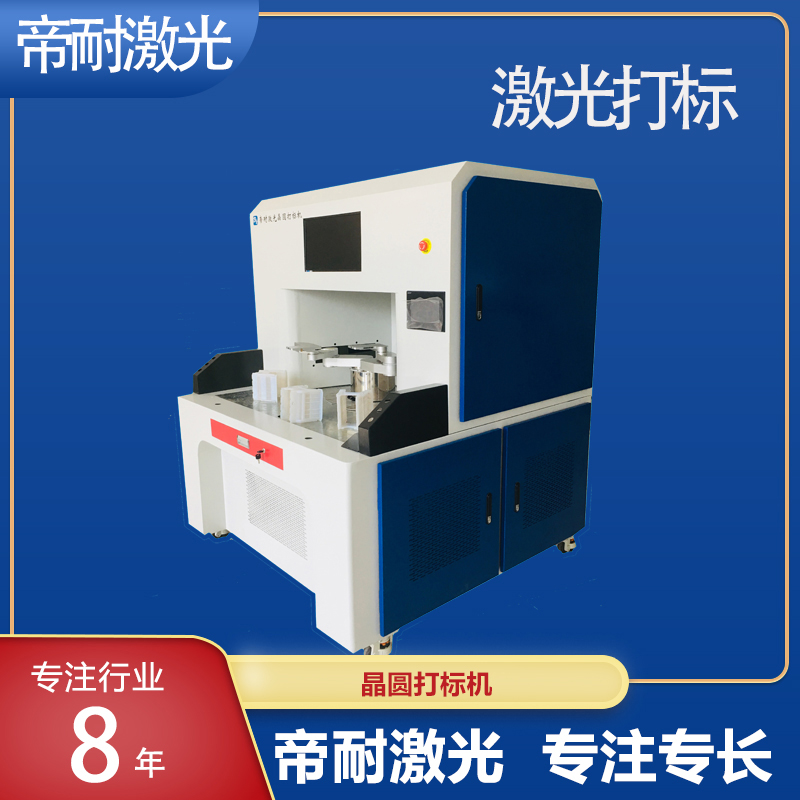 激光作用在晶圓上通過(guò)熱光源瞬時(shí)熱燒蝕并氣化或通過(guò)冷光源打斷材料分子鍵,在晶圓表面上留下相應(yīng)的字符、文字或圖案等信息,晶圓打標(biāo)具有自動(dòng)上下料,自動(dòng)定位,自動(dòng)打標(biāo)功能